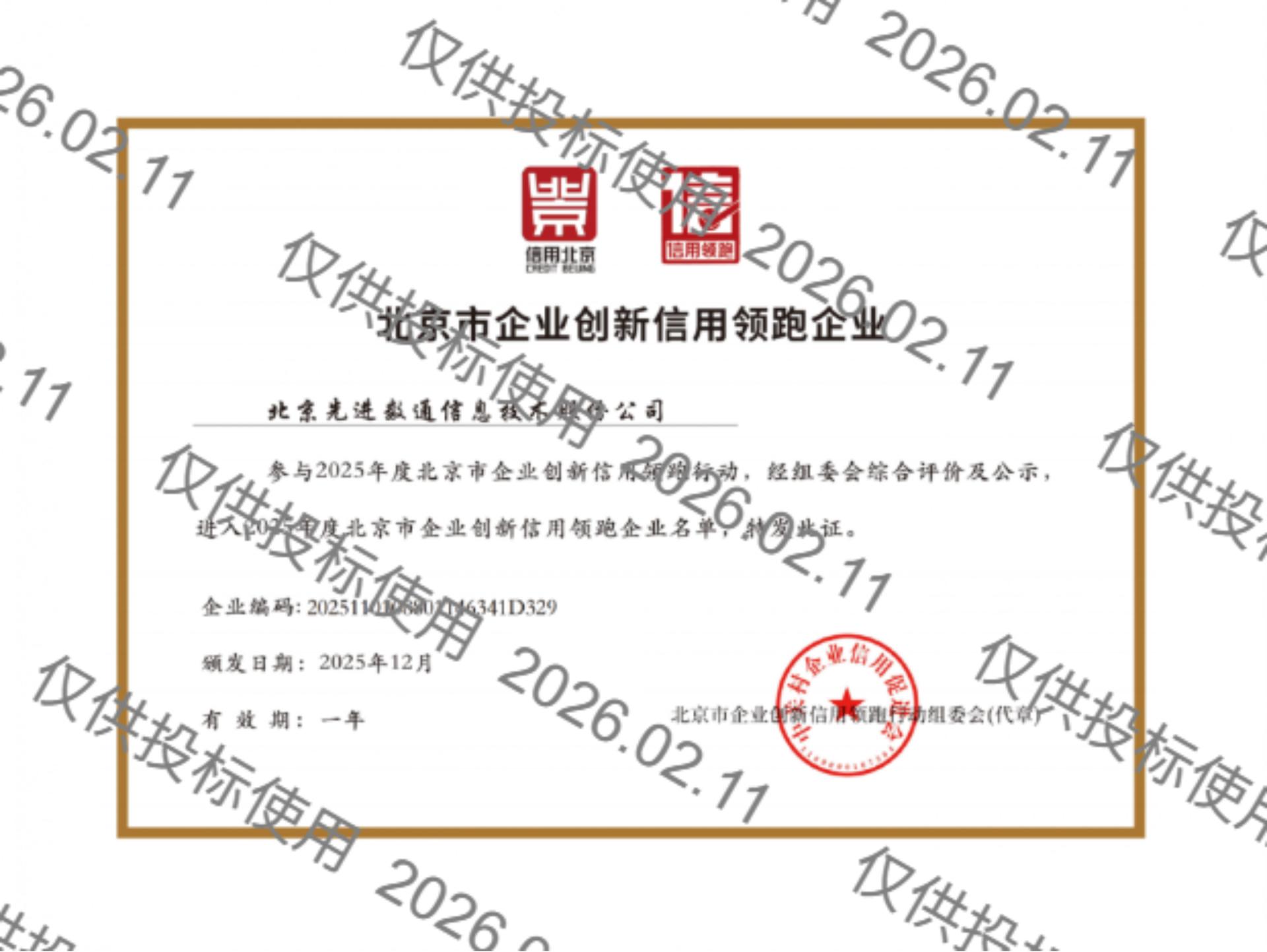 • 北京市企业立异信用领跑企业