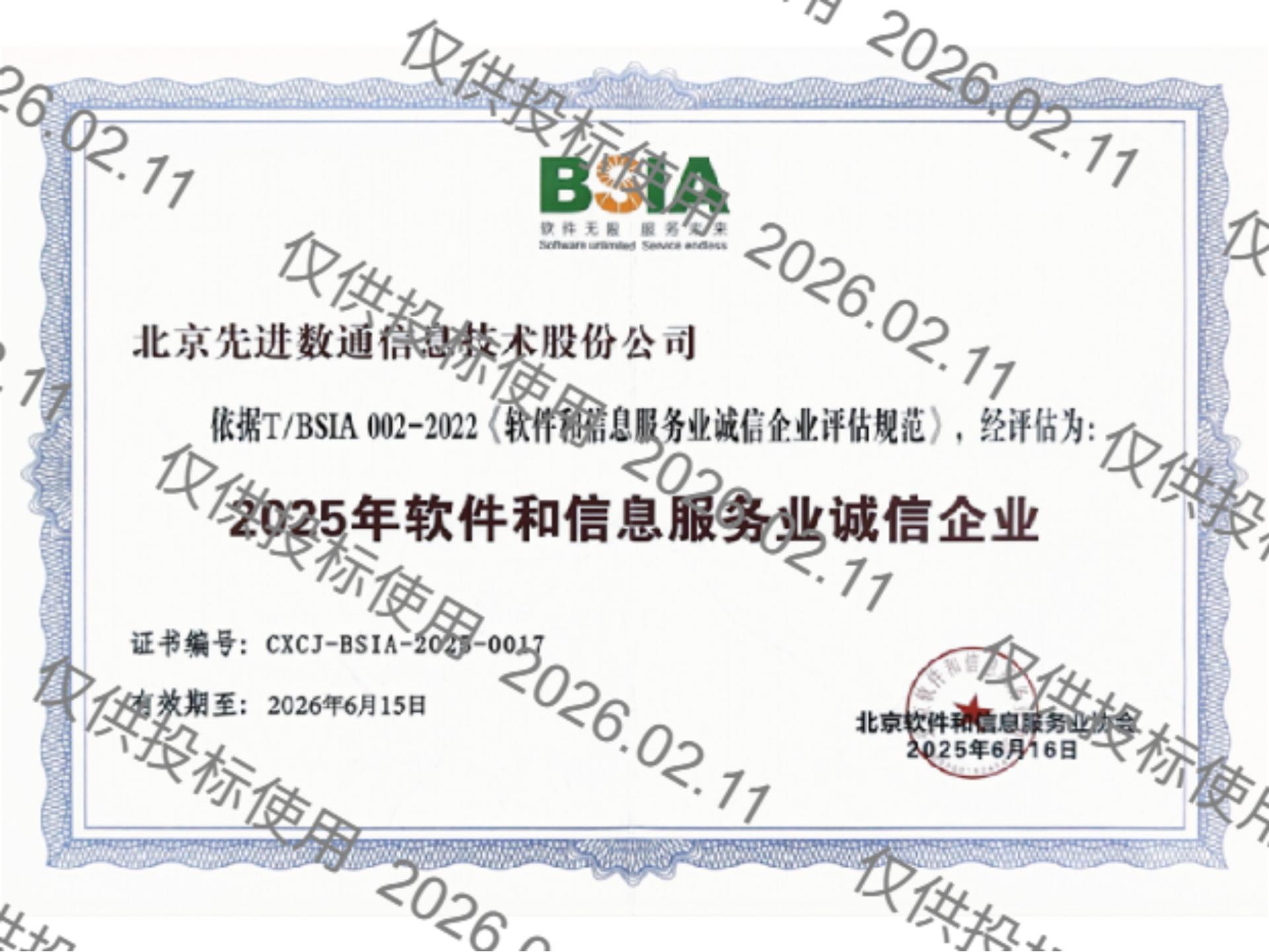 • 软件和信息效劳业诚信企业