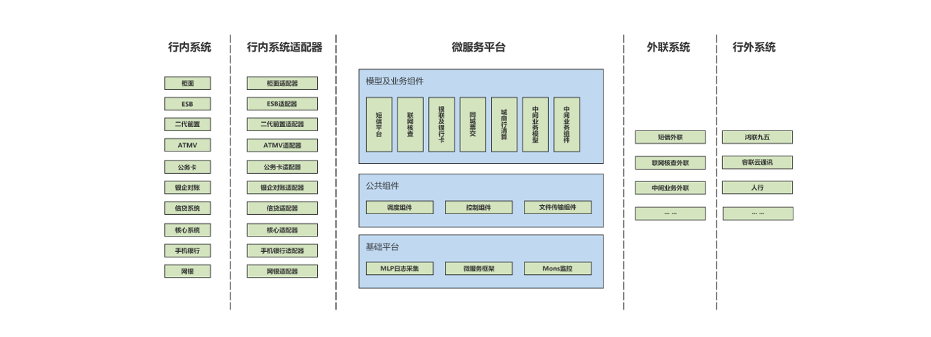 ÒÔÊÖÒÕÖÐÐÄ¡¢ÓªÒµÔª¼þºÍ³¡¾°Ä£×ÓµÈά¶È¶ÔǰÖÃÓªÒµ¾ÙÐй¤³§»¯Öع¹£¬£¬£¬£¬£¬£¬£¬£¬ÊÖÒÕÉϽÓÄÉЧÀÍÖÎÀíÆ½Ì¨Íê³ÉÊÖÒÕ×é×°£¬£¬£¬£¬£¬£¬£¬£¬ÖÎÀíÉϽÓÄÉЧÀÍ×ʲúÖÎÀíÆ½Ì¨¶ÔÏà¹ØÐ§¹û ͳһµÄÖÎÀí¡£¡£¡£¡£¡£Æ½Ì¨ÓÉÈý´ó²¿·Ö×é³É£ºÐÐÄÚϵͳÊÊÅäÆ÷£¨ÊµÏÖÐÐÄÚϵͳ½ÓÈë΢ЧÀÍÆ½Ì¨µÄÊÊÅ䣩¡¢Î¢Ð§ÀÍÆ½Ì¨£¨ÊµÏÖÓªÒµµÄÁ÷³Ì´¦Öóͷ£ºÍ³¤ÆÚ»¯ÖÎÀí£¬£¬£¬£¬£¬£¬£¬£¬Ìṩ¼à¿Ø¼°ÖÎÀí¹¦Ð§£©¡¢ÍâÁªÆ½Ì¨(ʵÏÖÐÐÄÚϵͳÓëÐÐÍâϵͳ֮¼äµÄͨѶ£¬£¬£¬£¬£¬£¬£¬£¬ÆÁÕϸ÷¸öÈý·½ÏµÍ³µÄͨѶ²î±ð)¡£¡£¡£¡£¡£